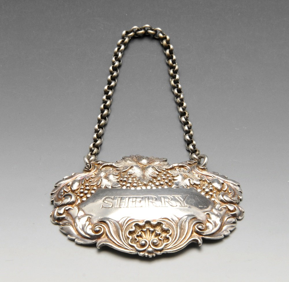 An early Victorian silver Sherry label.