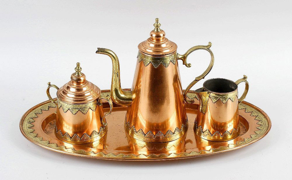 NO RESERVE - AN ANTIQUE GEORGE V STERLING SILVER FOUR PIECE TEA SET, R J MOSLEY & CO, SHEFFIELD 1914NO RESERVE - AN ANTIQUE GEORGE V STERLING SILVER FOUR PIECE TEA SET, R J MOSLEY & CO, SHEFFIELD 1914 comprising a teapot, hot water jug, sugar bowl and cream / milk jug, each with engraved foliate and