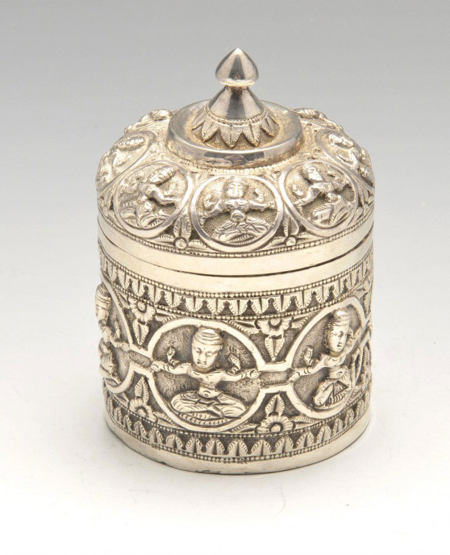 Chinese silversmith. Lidded jar richly decorated in relief with flowers and ornaments.Antique wooden lacquerware tea canister with genuine gold lacquer design and lotus scroll pattern14 hrs LeftChinese Pewter Tea Caddy with Stone InlaysFeb 28, 2026Chinoiserie Style Ceramic Lidded Ginger Jar w/ Hand-Painted Bird & Foliage6 days LeftAn Exquisite Limestone Flower Pattern JarMar 06, 2026Silver Relief Square Lidded Jar with Figure Story Pattern3 days LeftAsian Hand-Painted Porcelain Copper Details Jar2 days LeftAn Exquisite Silver Lotus Pattern Elephant-Ears and Beast-Ears CenserMar 20, 2026A Exquisite Gilt Bronze Inlaid Gems Lotus Pattern Double-Ears and Tripod CenserMar 04, 2026A fine copper-inlaid porcelain pastel fish algae lid jarMar 22, 2026Gorham sterling silver fine tea caddy with paneled body. 3 panels with Elizabethan style engravedMar 01, 2026Large Relief Decorated Copper Covered Baluster Urn, 20th c., Urn- H.- 26 in., Dia.- 18 in., Stand-Feb 27, 2026A Tang Dynasty gilded figure pattern lid jarMar 07, 2026Handmade 925 Sterling Silver Besumim Holder with Leaf Applique DesignMar 02, 2026Brass Torah Crown, Damascene Work6 days LeftDouble-Eared Incense Burner with Flower Pattern & Lotus Knop, Qing Dynasty5 days Left