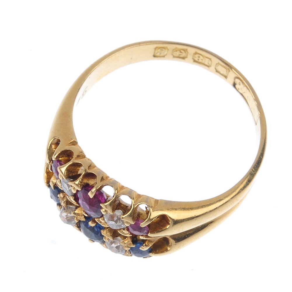 An Edwardian 18ct gold ruby, sapphire and diamond ring.