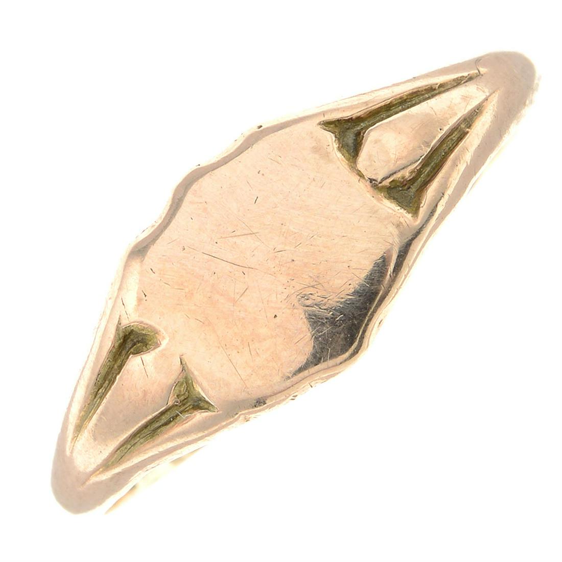An Edwardian 9ct gold shield-shape signet ring.