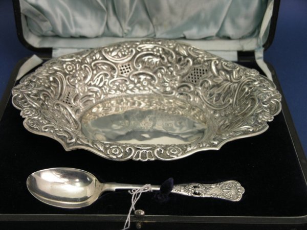 An Edwardian cased silver presentation dish, 11oz