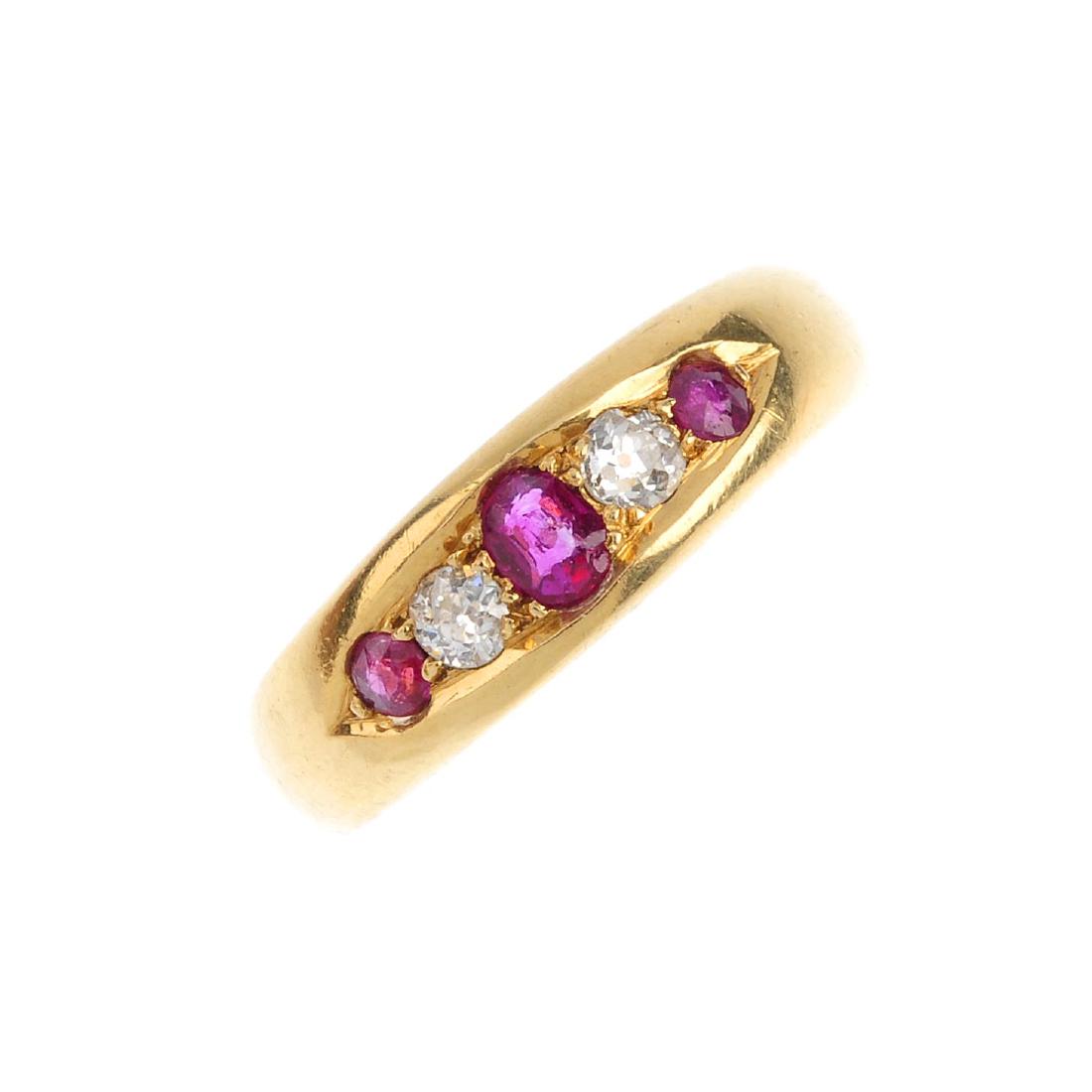 An Edwardian ruby and diamond ring. The oval-shape