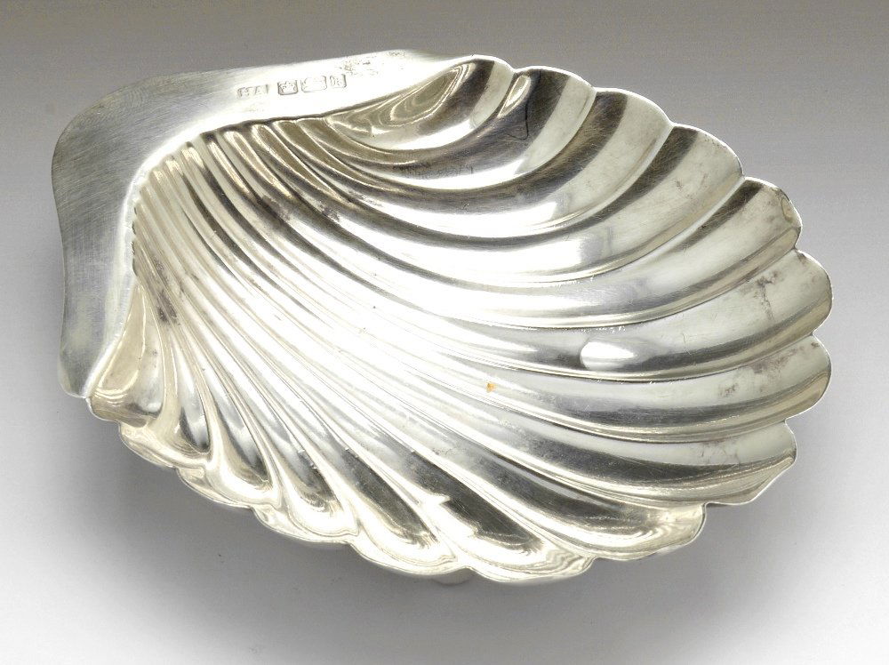 SoldHallmarked Silver Shell Shaped Butter Dish & Knife in case, 1908 Birmingham 44 G.Hallmarked Silver Shell Shaped Butter Dish & Knife in case, 1908 Birmingham 44 G.See Sold Price
