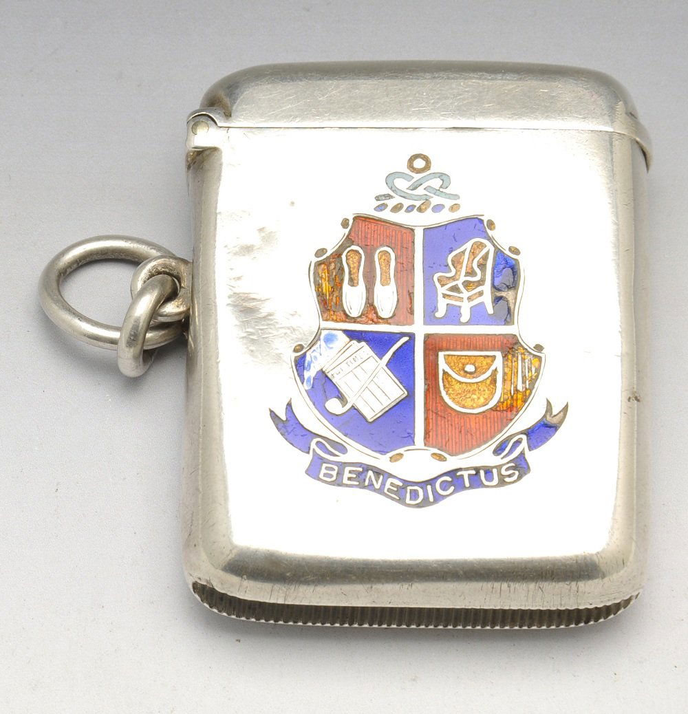An Edwardian silver enamelled vesta case.