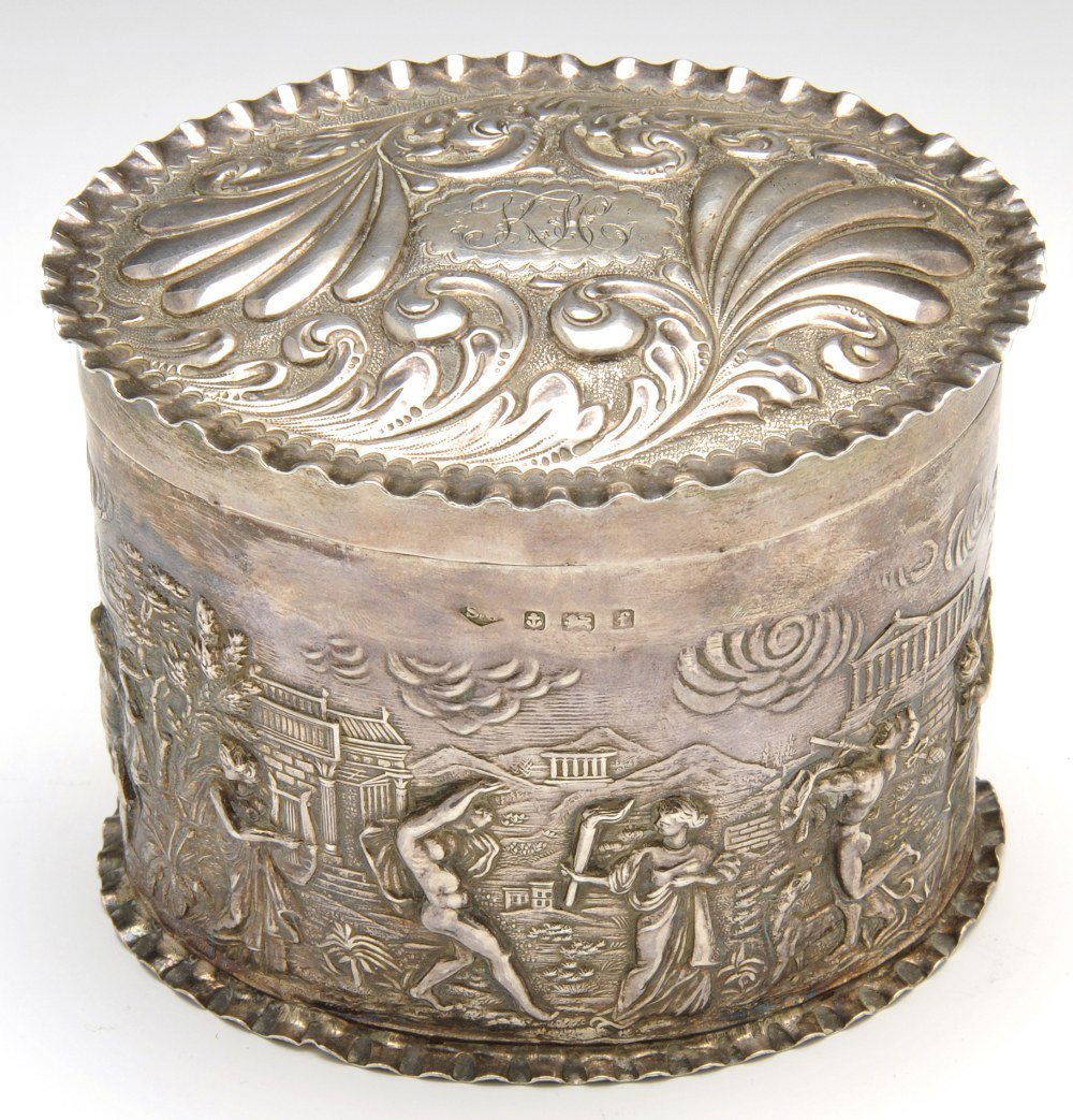 Victorian Silver Plate Oval Tea CaddyMar 12, 2026A SILVER ETROG BOX, POSSIBLY EASTERN EUROPE OR AUSTRIA-HUNGARY, 19TH CENTURYFeb 15, 2026A SILVER ETROG BOX, EUROPEAN, 19TH CENTURY, JUDAICAFeb 15, 2026A FRENCH SILVER TWIN HANDLED CIRCULAR TUREEN AND COVERFeb 17, 2026Vintage Persian 875 or 900 Silver Lidded Box2 days LeftAntique Moroccan Silver Plated Tea Caddy Footed Candy Box19th Century French Silvered Metal Octagonal Spice Casket with Repousse Motifs3 hrs LeftNeoclassical Silver Plate Hot Water Urn, 19th C.Feb 12, 2026A continental silver box probably Hanau, late 19th / early 20th century, unattributed makerA GEORGE III SILVER OVAL TEA CADDYFeb 17, 2026Ottoman Empire Silver Spice Container, 19th C.Mar 19, 2026Persian Silver Lidded Jewelry Box5 days LeftGerman repousse silver singing bird boxFeb 19, 2026Early 18th Century English Silver Tray with Rocaille and Floral Embossing, 702gFeb 15, 2026Victorian Silver-Plated Biscuit BoxFeb 12, 2026Silver Plate Biscuit Box Circa 1880s'