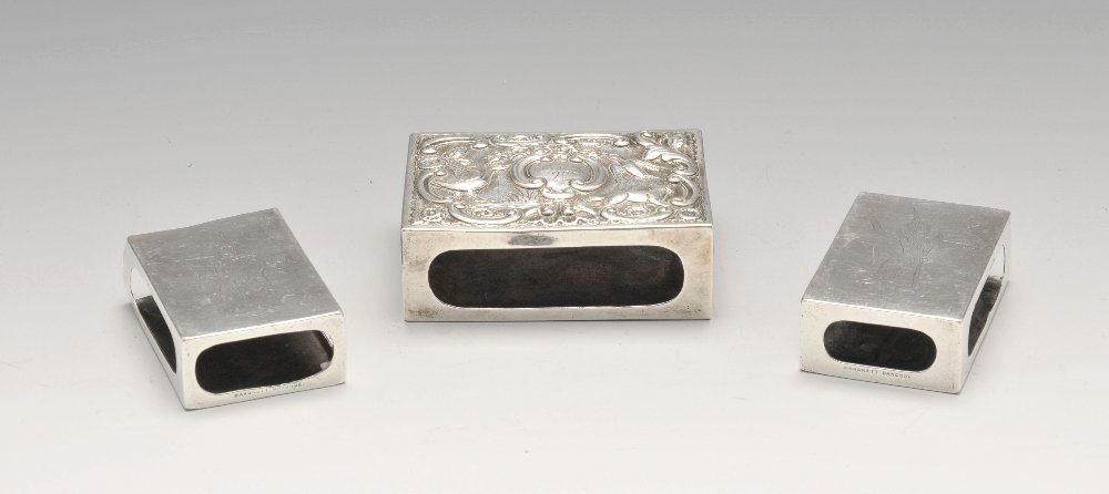Antique Silver Chinese Matchboxes5 days LeftA GEORGE IV SILVER SNUFF BOX AND A VICTORIAN VESTA CASEFeb 17, 2026A VICTORIAN SILVER SHAPED RECTANGULAR SNUFF BOXFeb 17, 2026Antique Sterling Silver Cigarette Box, Birmingham, Early 1900sFeb 19, 2026A LATE 19TH CENTURY JAPANESE MEIJI PERIOD SILVER BOX AND COVER engraved with flowers. 70 grams. 8.53 days LeftTHREE SILVER BOXES, INDIA, 20TH CENTURYFeb 15, 2026Collection of Antique Sterling Silver Objects and AccessoriesFeb 21, 2026A silver double tiered cigarette box Asprey & Co Ltd, London 1919Chinese Sterling Silver Filigree Floral BoxFeb 28, 2026Tiffany & Co. Silver-Soldered Stamp Box and Cover.1 day LeftGorham Art Nouveau Sterling Silver Cigar Card Box 1900s755 Lots AwayCanton circa 1860 marked Khe Cheong A mid-19th century Chinese silver snuff boxFeb 18, 2026AN EDWARDIAN SILVER RECTANGULAR TABLE BOXFeb 17, 2026A VICTORIAN SILVER BOX. Birmingham 1899. 88 grams. 12.5 cm long.5 days LeftGorham Art Nouveau Sterling Silver Cigar Card Box 1900sFeb 15, 2026An Antique Sterling Silver Jewelry Box5 days Left