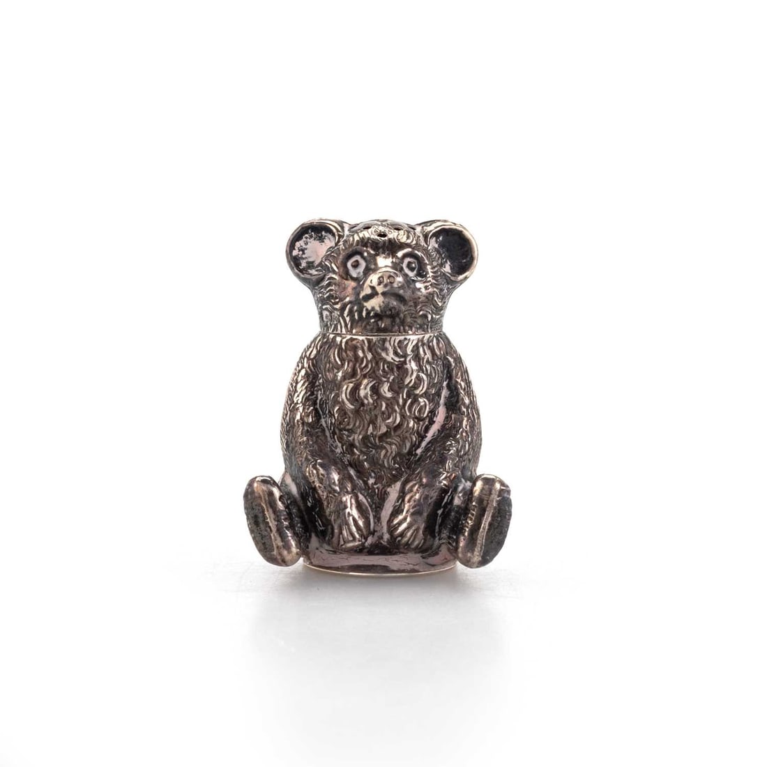 AN EDWARDIAN SILVER NOVELTY PEPPER POT