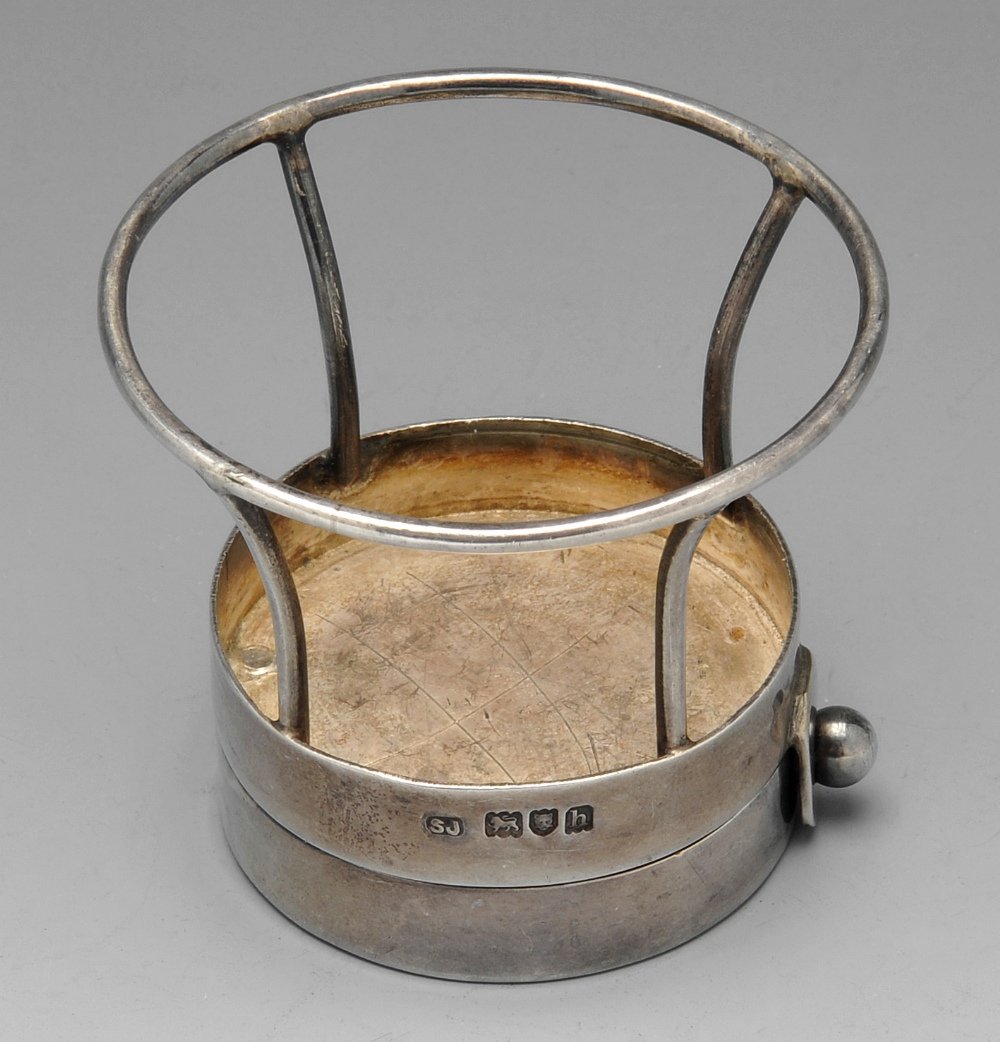 An Edwardian silver tape measure James Chesterman & Co, Sheffield 1905Mid 20th Century Mid-Century Sheffield Silver Co. Silverplate Pierced Wine Bottle HolderEnglish Crystal and Silver Plate Biscuit Barrel on Stand, 19thc.2 days LeftEdwardian Silver Sugar Caster, Mark of Sydney Bellamy HarmanFeb 12, 2026A LATE VICTORIAN SILVER CANDLE HOLDERFeb 17, 2026RUSSIAN GILT SILVER TEA GLASS HOLDER3 days LeftVictorian Silver Plate Oval Tea CaddyMar 12, 2026An antique decorated religious silver church holy water basket with handleFeb 24, 2026RUSSIAN - JEWISH SILVER TEA GLASS HOLDER, SAZIKOV3 days LeftMappin & Webb Silver-Plated Adjustable Wine Caddy Circa 1900-19104 days LeftEuropean silversmith. Antique silver tea strainer on tripod with shaft in turned ebony. GildedA VICTORIAN SILVER MOUNTED GLASS DECANTERFeb 17, 2026ANTIQUE 19TH CENTURY POLISH SILVER PLATED CANDLE STICK3 days LeftA FRENCH ART NOUVEAU SILVER MOUNTED GLASS BISCUIT BARRELFeb 17, 2026Meriden Britannia Co. Silver Plate Swing Handled Footed Basket Mid Century4 days LeftThree Bottle Silver Plated Bottle Frame22 hrs Left