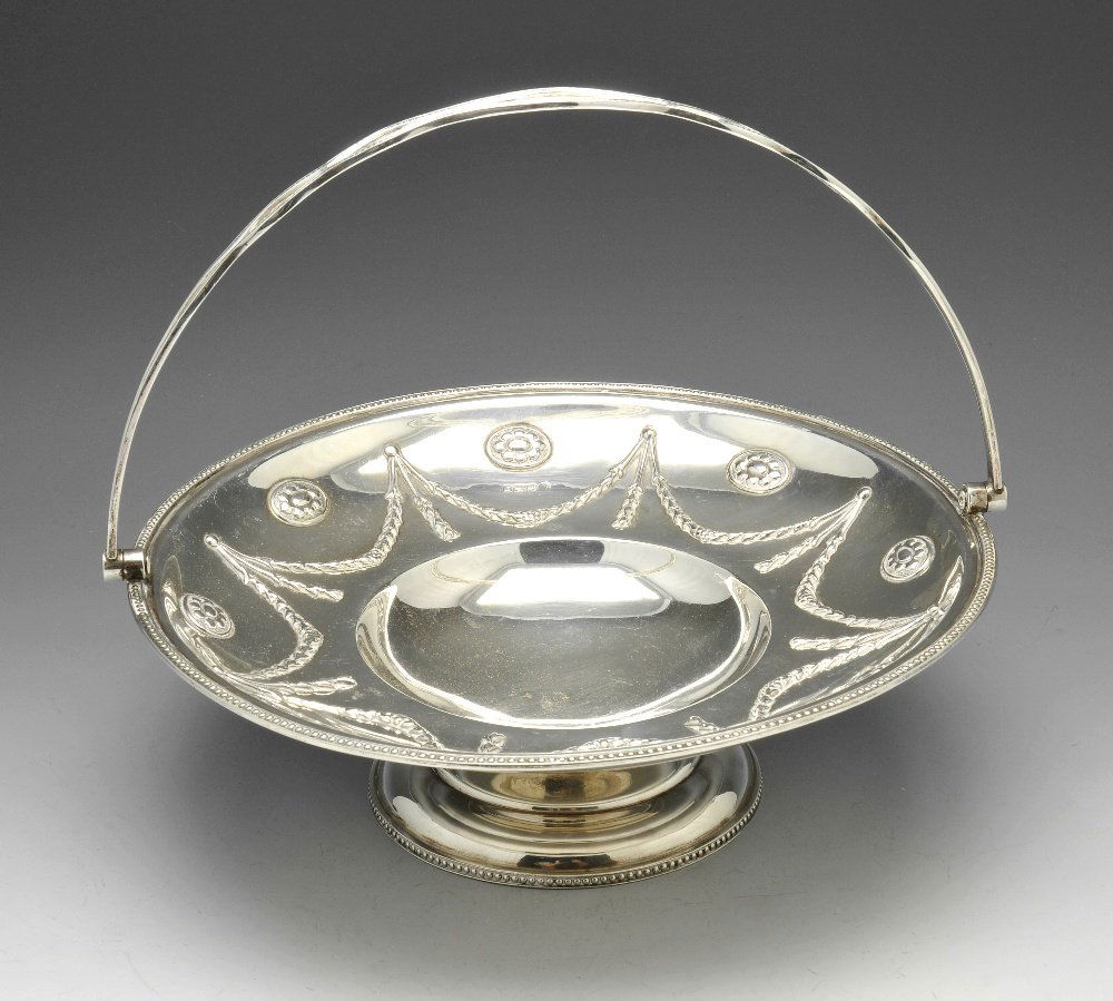 An Edwardian silver swing handled dish.