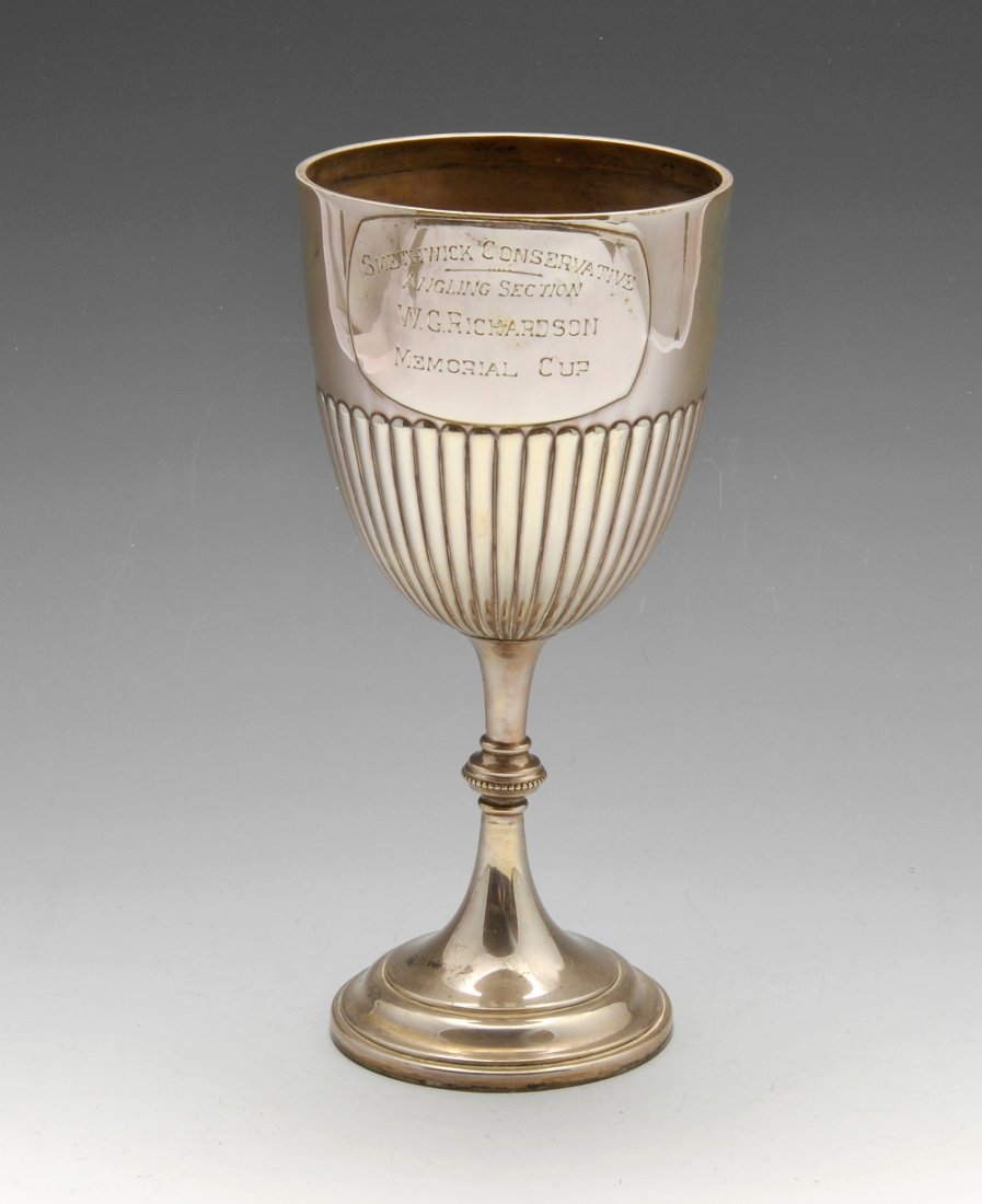 19th C Canadian Silver Goblet Trophy by James E. Ellis, Toronto 1874Feb 21, 2026Vintage Engraved Brass Goblet / Kiddush CupFeb 12, 2026Cleveland, Columbus & Cincinnati Railroad Coin Silver Presentation Chalice dated 18496 days Left1814 English Sterling Silver Gilt Trophy Cup by William Burwash3 days LeftA Gorham Sterling Silver Ecclesiastical Chalice 12 OztMar 07, 2026Gilt Catholic Chalice with Maker’s Mark and InscriptionMar 15, 2026Antique Kalo Shop 925 Sterling Silver Trophy Cup with Handles3 days LeftAN EDWARDIAN SILVER TWIN HANDLED CUPFeb 17, 2026American Sterling Silver Trophy, Offered by H.P. Whitney6 days LeftSolid American Coin Silver Goblet, Only Mark Is 16 Inside Stem2 days LeftEdward VII Britannia Standard Silver Gun Club Trophy Cup and Cover6 days LeftChinese silver ewer trophy, 1870, ex HindmanFeb 19, 2026A COMMONWEALTH SILVER GILT STANDING CUP AND COVERFeb 17, 2026Fine English Regency Silver Goblet4 days LeftElizabeth II Silver Chalice, Mark of Solomon Joel PhillipsFeb 12, 2026Cálice Metálico Decorativo com Relevos Florais – Origem Indeterminada4 days Left