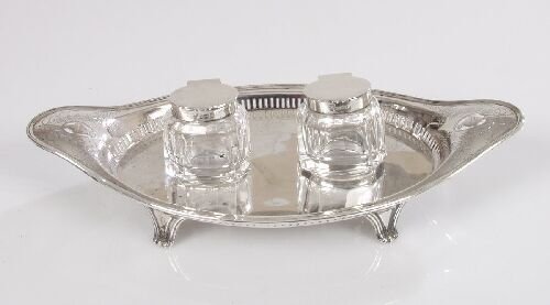 An Edwardian two bottle inkstand, the s