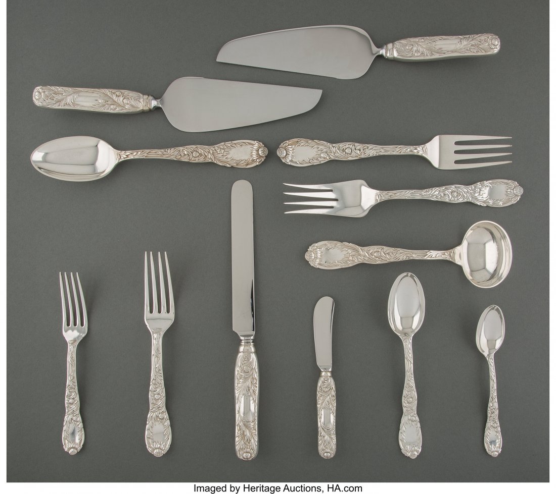 TOWLE "OLD LACE" STERLING SILVER FLATWARE, LOT OF 11Mar 04, 2026ENGLISH STERLING SILVER PLACE FORKS AND KNIVES, LOT OF 12Mar 04, 2026INTERNATIONAL SILVER CO. AND OTHER STERLING AND 0.950 SILVER FLATWARE AND SERVING UTENSILS, LOT OFMar 04, 2026Puiforcat (Hermes) - 299pc. Antique French Sterling Silver Flatware Set, Vauban, ExcellentDurgin Chrysanthemum Sterling Silver Flatware Set 126 Pieces6 days LeftTiffany & Co. "Wave Edge" sterling flatware set.2 days LeftTiffany & Co. Silver 'Faneuil' Flatware ServiceMar 15, 2026Tiffany & Co. Sterling Silver "English King" Pattern Flatware ServiceMar 16, 2026Gorham Imperial Chrysanthemum Sterling Silver Flatware Set 93 pcs Service for 123 days LeftInternational Prelude Sterling Flatware, 88 Pieces, Jimmy Carter Provenance3 days LeftTiffany & Co. Richelieu Sterling Silver Flatware Set 90 Pieces by George Paulding FarnhamMar 01, 2026Gorham "St. Dunstan" sterling flatware set.2 days Left(94) PIECE GORHAM STERLING FLATWARE SERVICEMar 05, 2026(78) PIECE REED & BARTON STERLING FLATWARE SERVICEMar 05, 2026Towle Louis XIV Sterling Flatware Service4 days LeftVintage Silver Plated Flatware SetMar 05, 2026