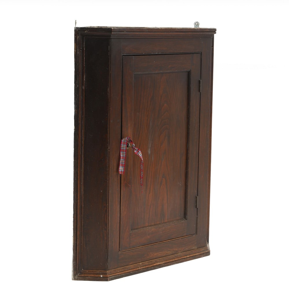 An elm hanging corner cupboard,