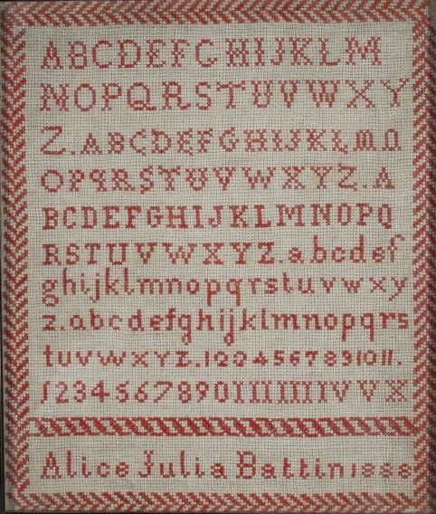 An Embroidered Sampler, dated 1888, by Alice Julia