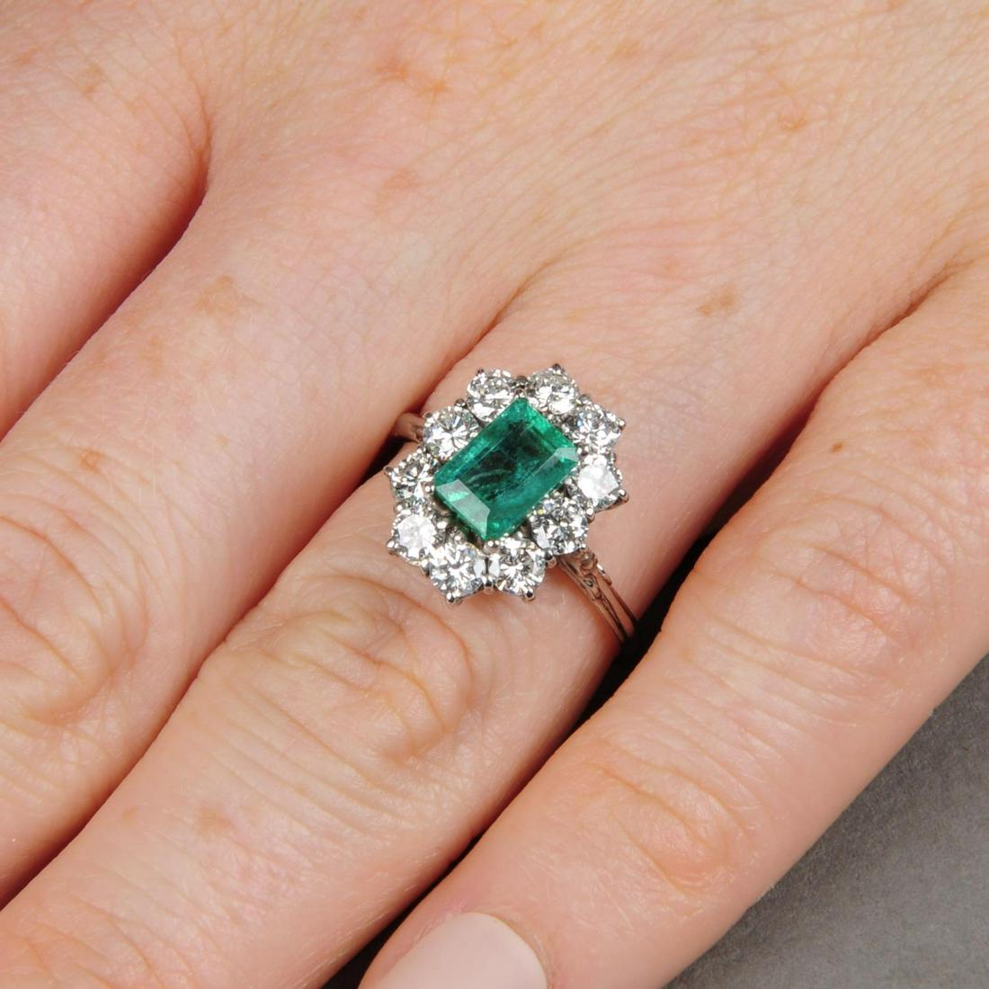 An emerald and brilliant-cut diamond cluster ring.