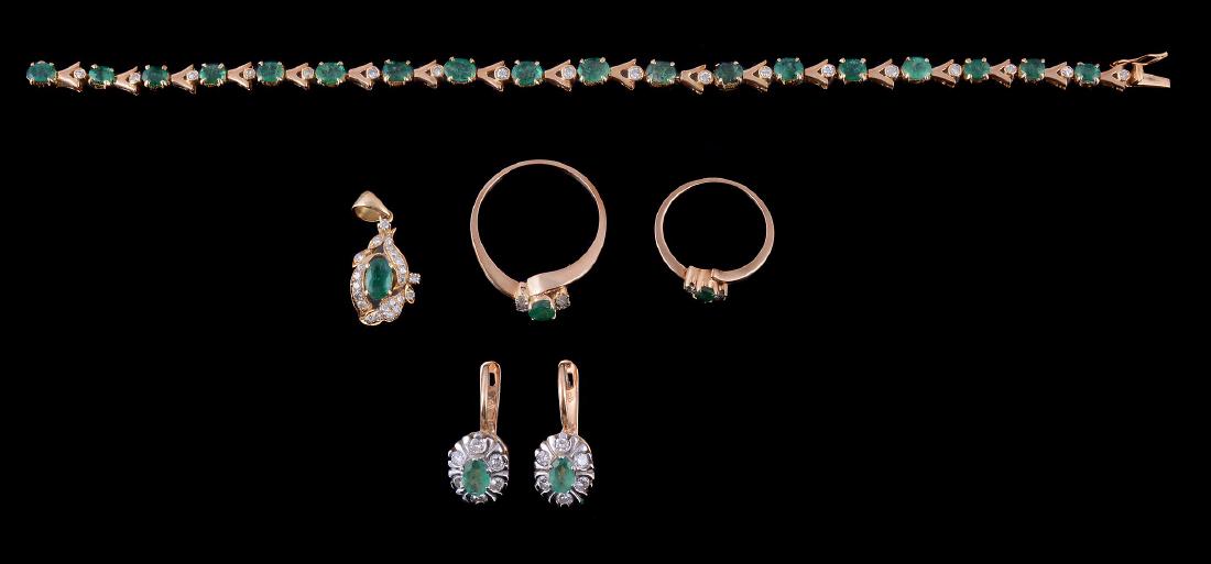 An emerald and diamond bracelet, composed of
