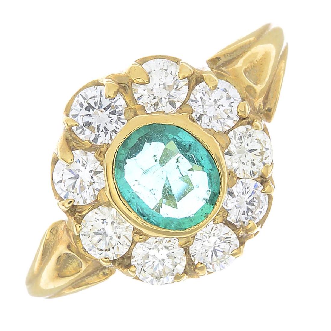 Ring - 18 kt. Yellow gold, 18K Yellow Gold 0.84ct Diamond & Emerald Cluster Ring - 2.64ct. tw.Eastern European Art Gallery Inc$5004 days Left