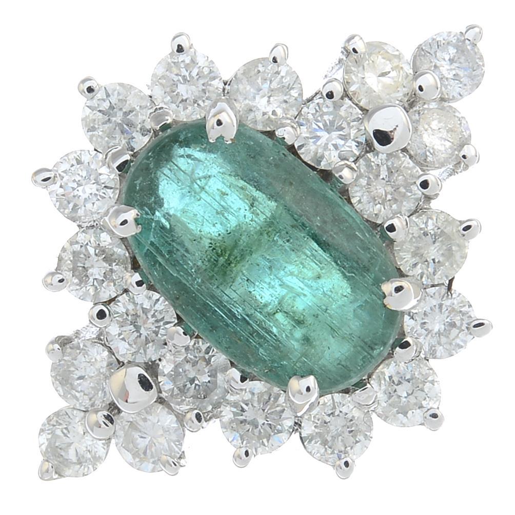 An Emerald And Diamond Cluster Ring.emerald With Mini