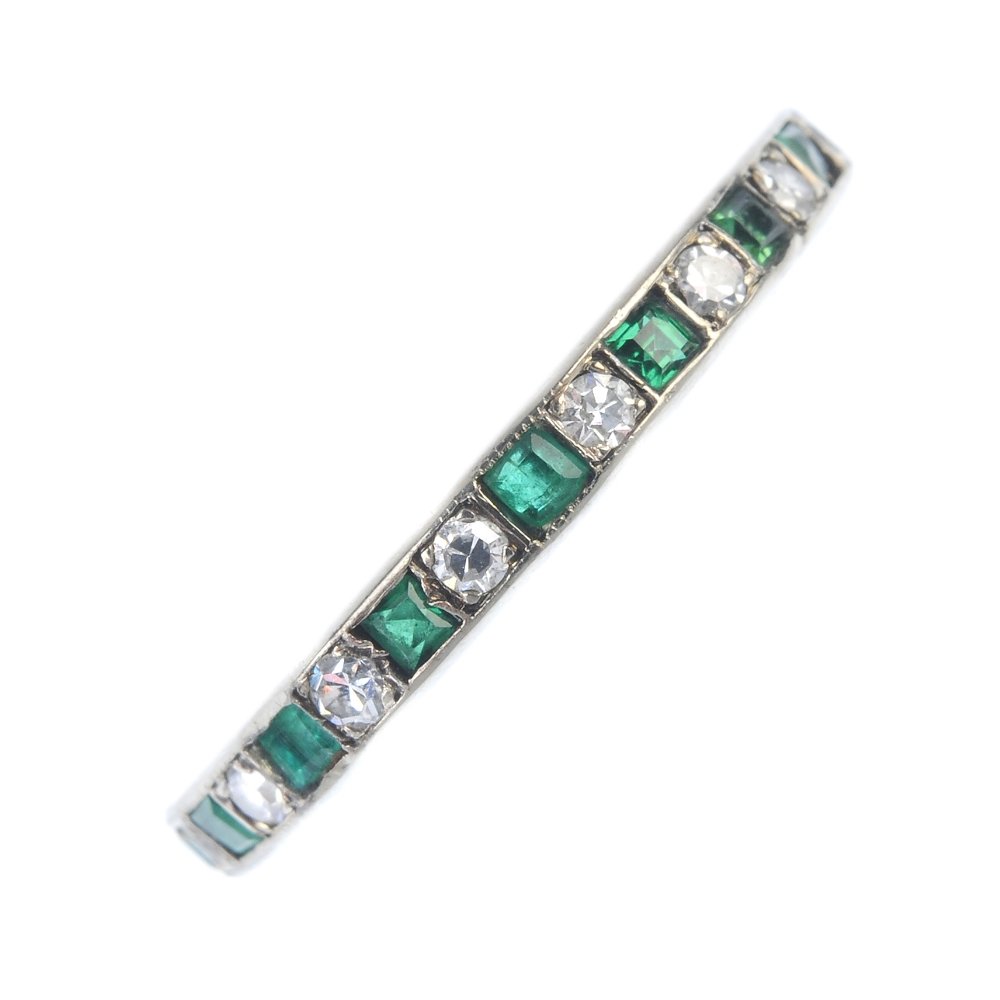 An emerald and diamond full-circle eternity ring.