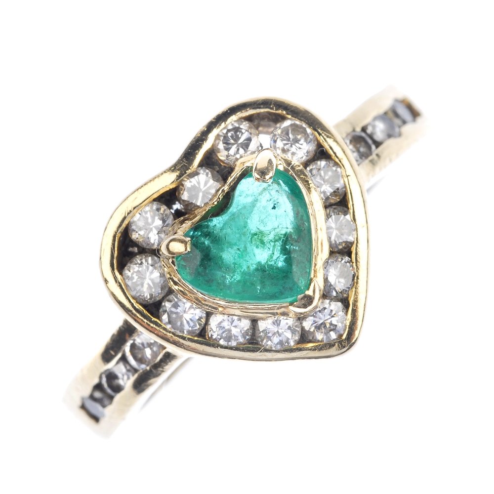 Sold14k Gold, Emerald, & Diamond Cluster RingA emerald and diamond yellow gold cluster ring. Marked 14k gold quality. US ring size 8.5. Total weight approx. 4.4 grams.See Sold Price
