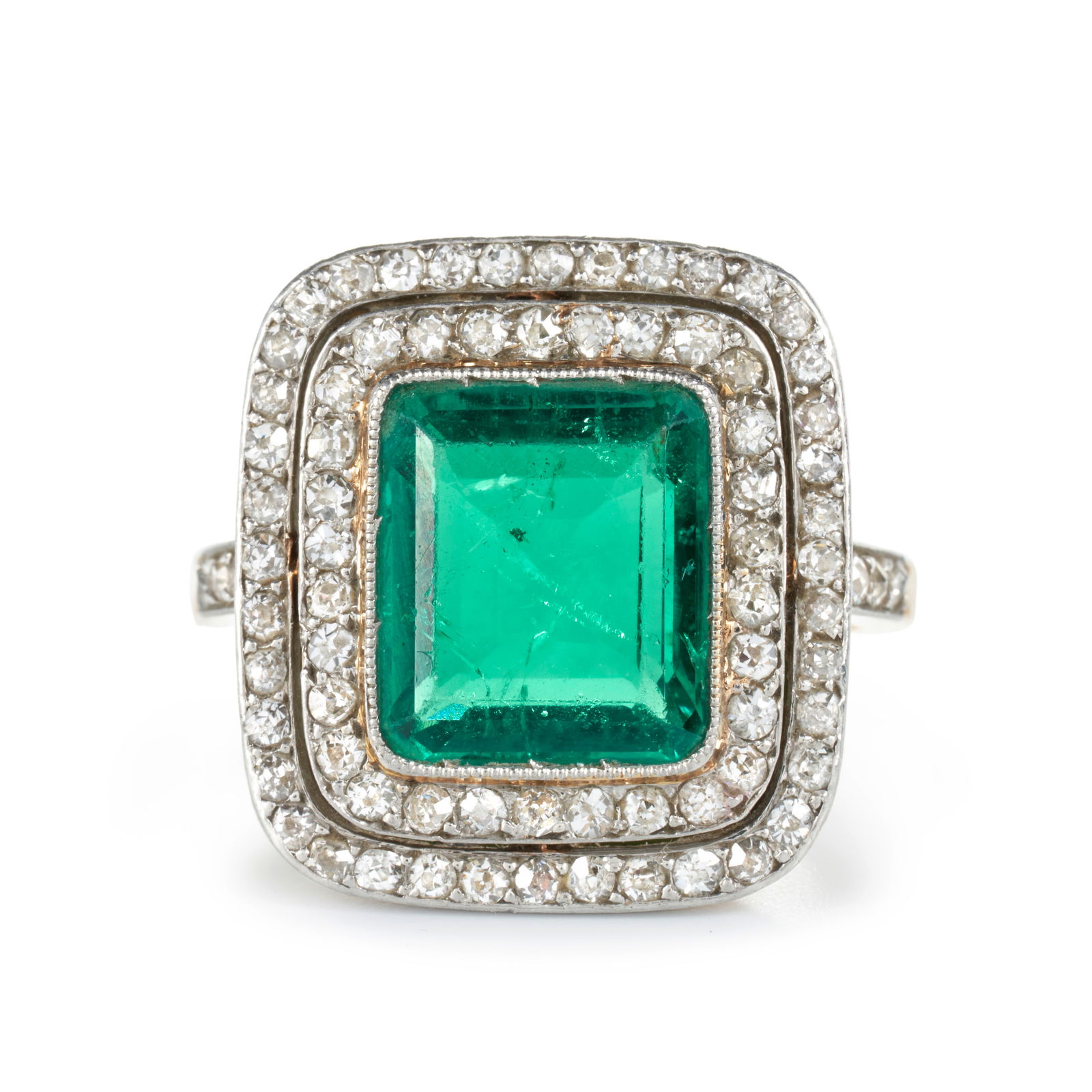 AN EMERALD AND DIAMOND RING, CIRCA 1920