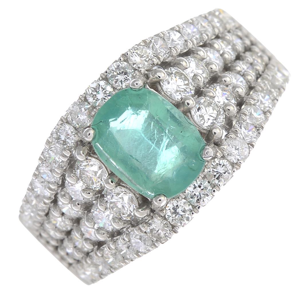 An emerald and diamond ring. Emerald calculated weight