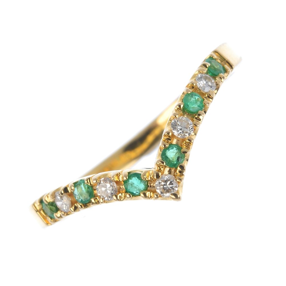 An emerald and diamond wishbone ring.