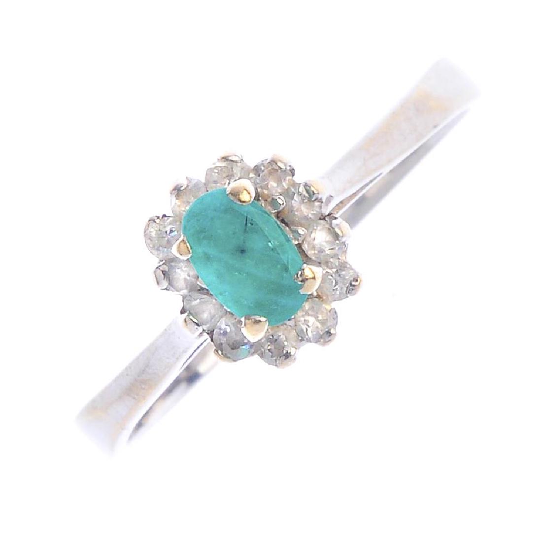 An Emerald And Gem Set Cluster Ring. The Oval Shape