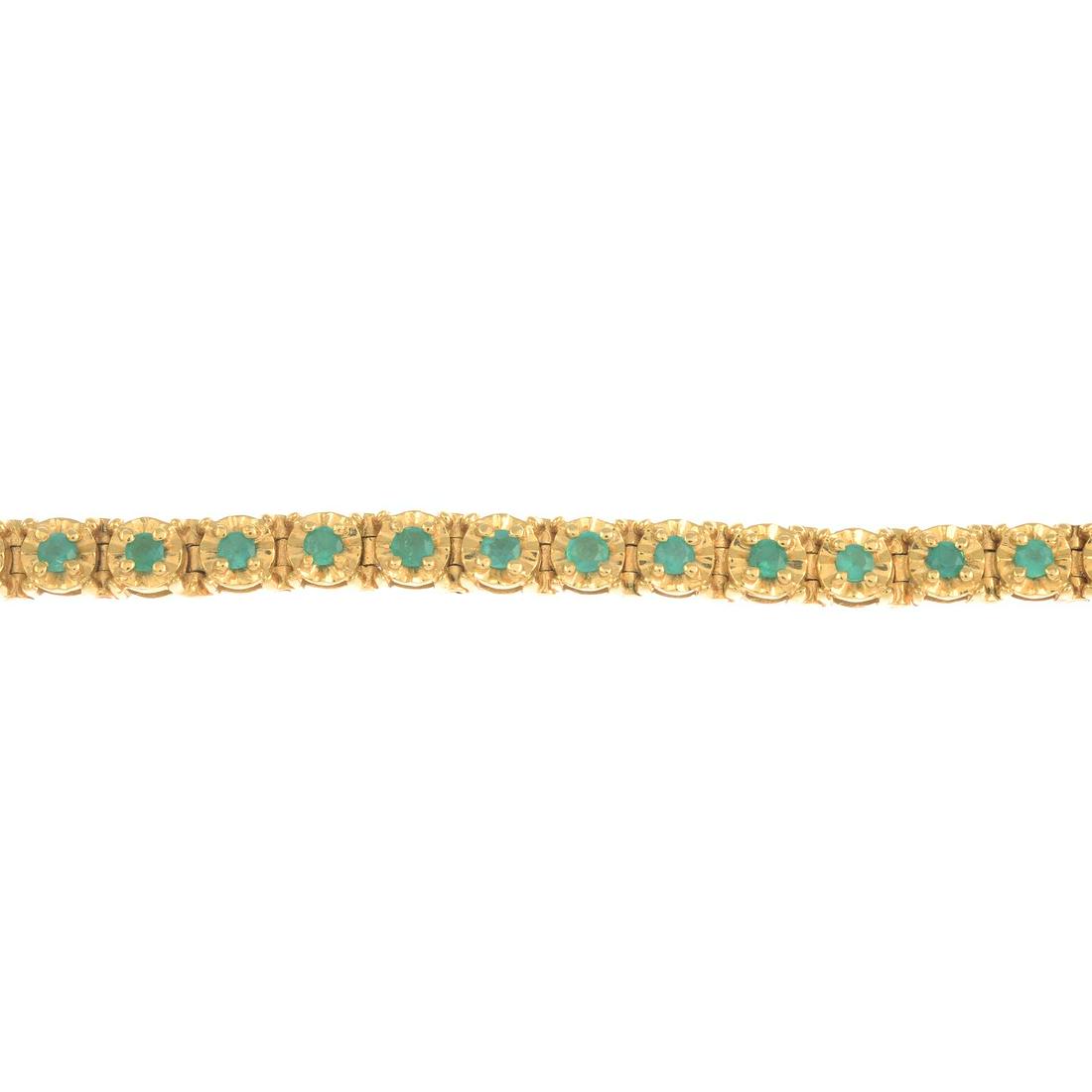 An emerald bracelet.Length 16.5cms. 25.3gms.