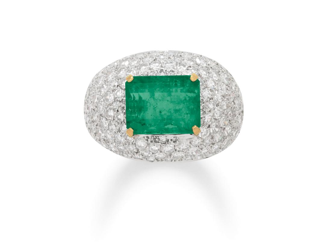An Emerald, Diamond, Platinum and Gold Ring