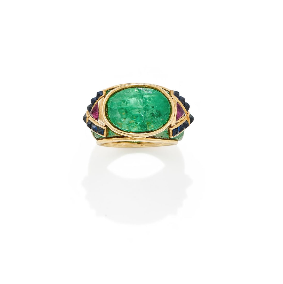 AN EMERALD, RUBY AND SAPPHIRE DRESS RING