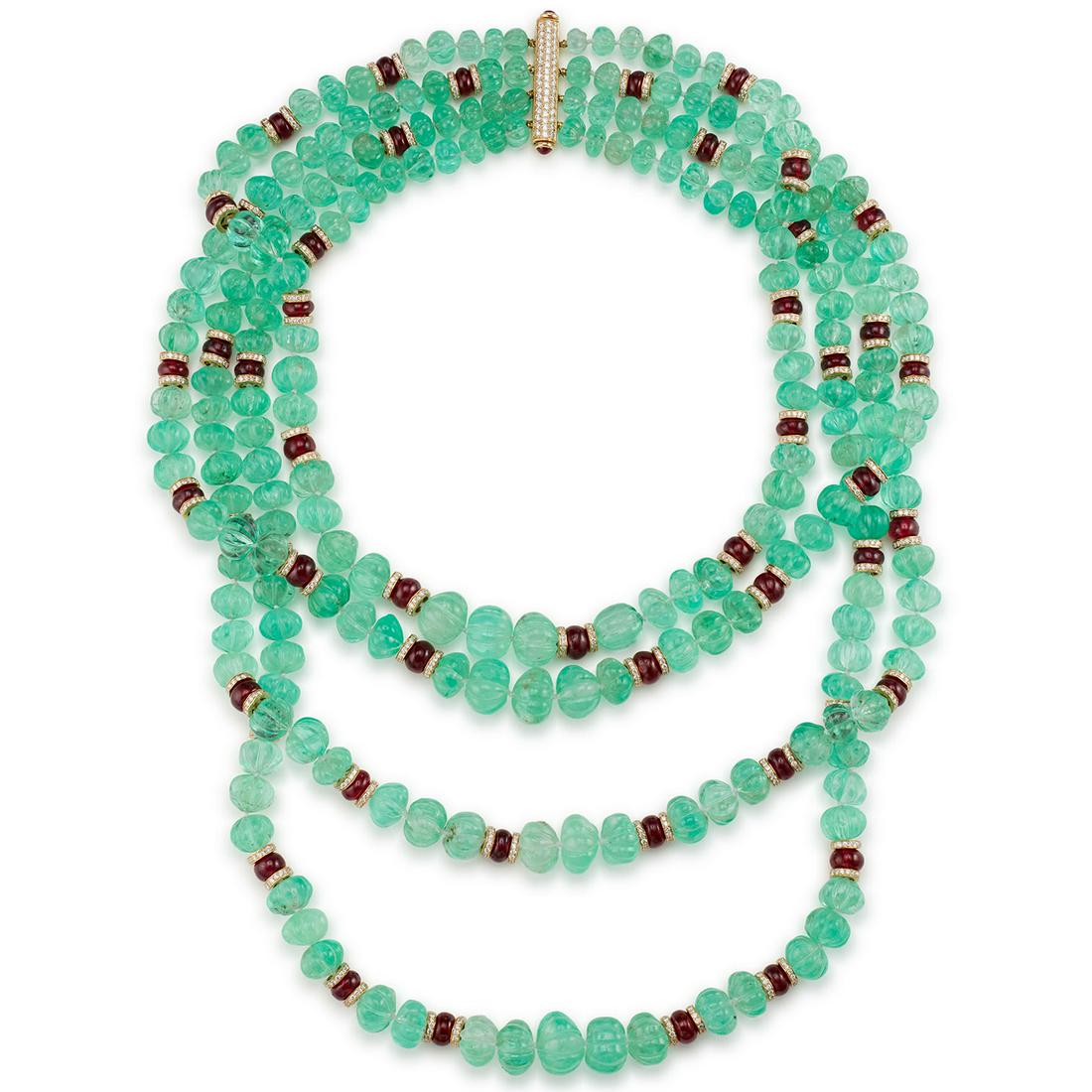 An Emerald, Ruby, Diamond, and Gold Necklace