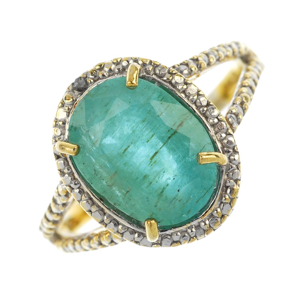 An emerald single-stone dress ring.