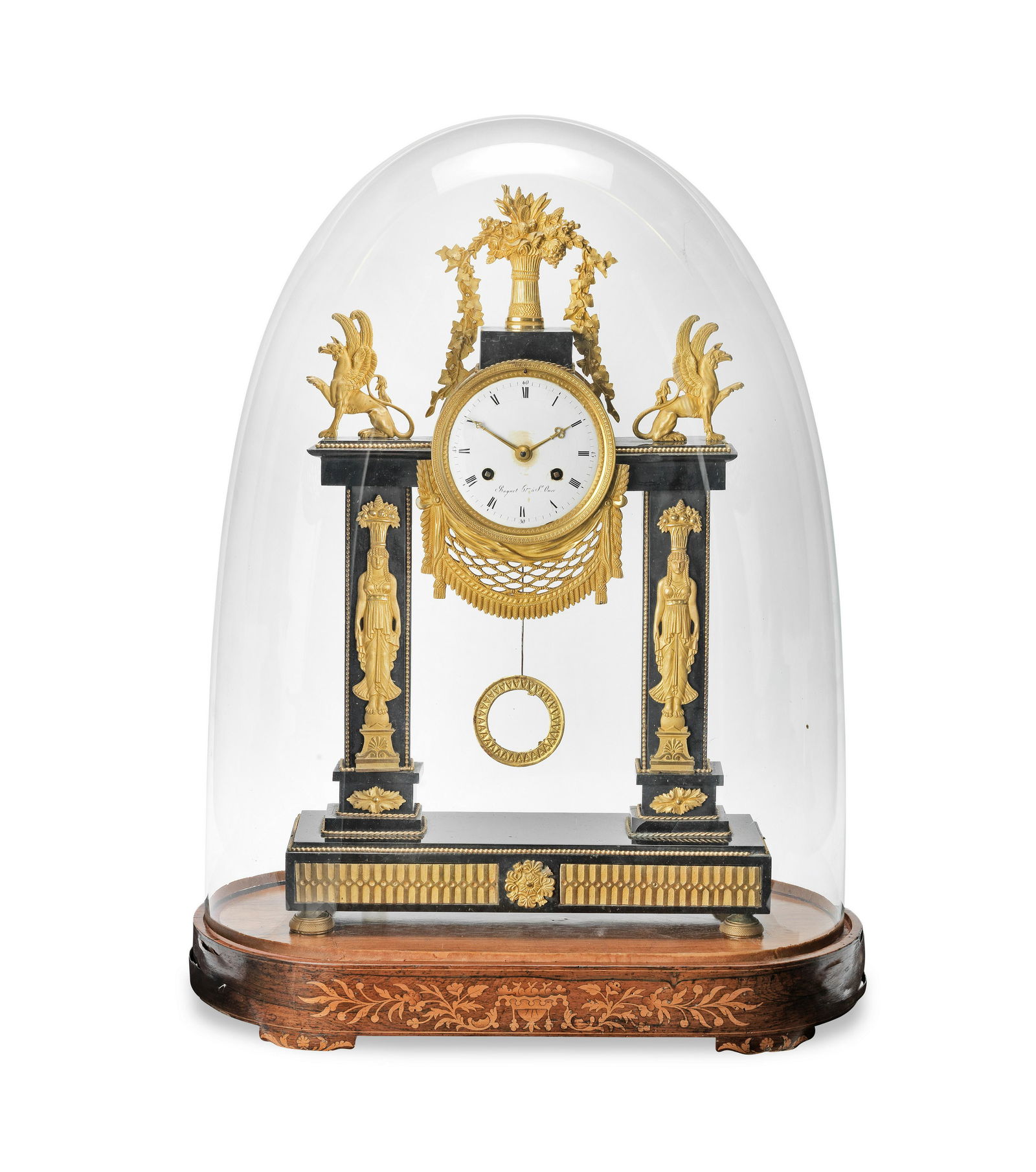 An Empire ormolu-mounted black marble mantel clockThe