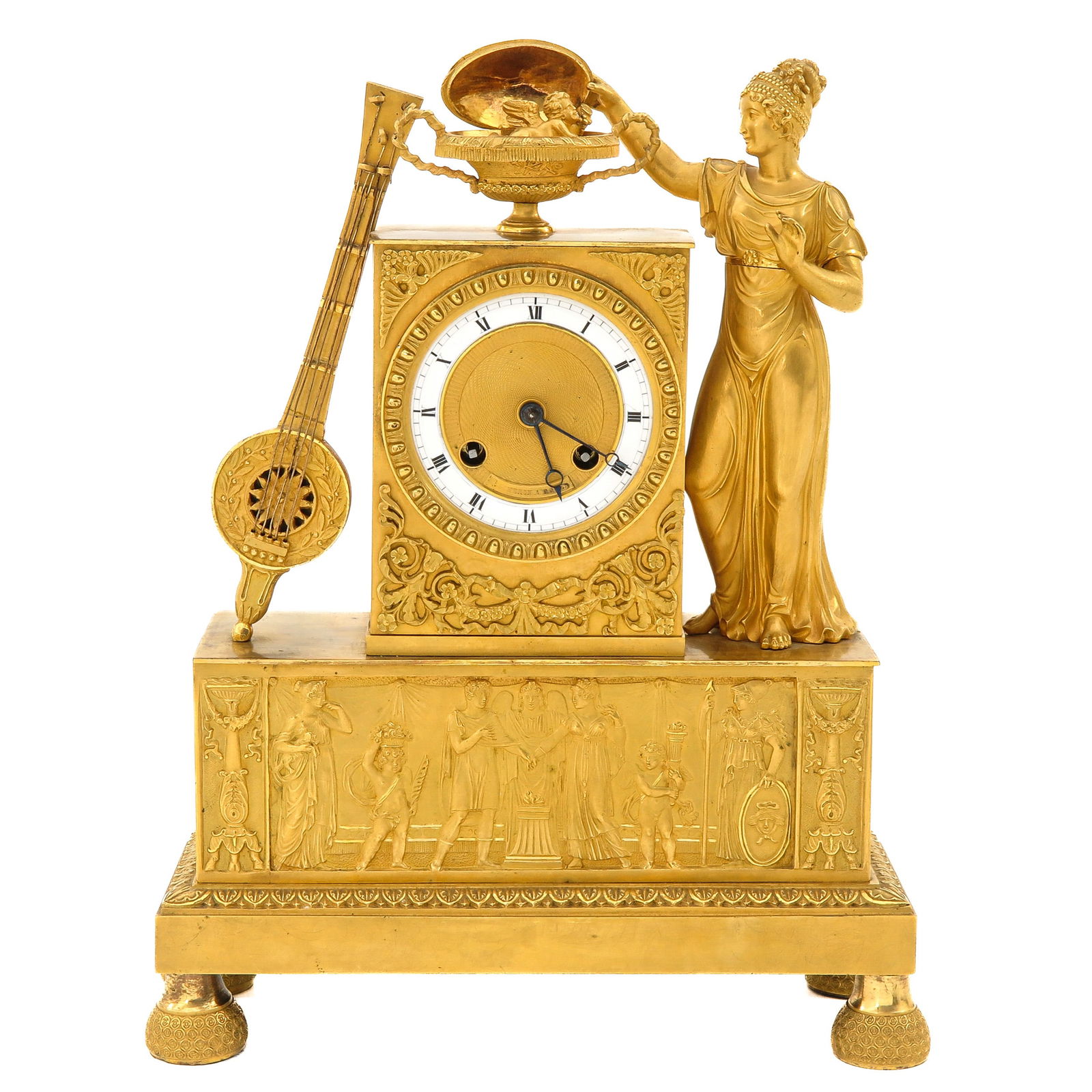 SoldA Empire Period Pendulefire gilded, Empire period, ca.1810, with god playing lyre, height 39 cm.See Sold Price
