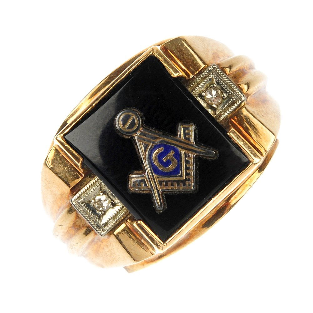 An enamel and gem-set Masonic ring.