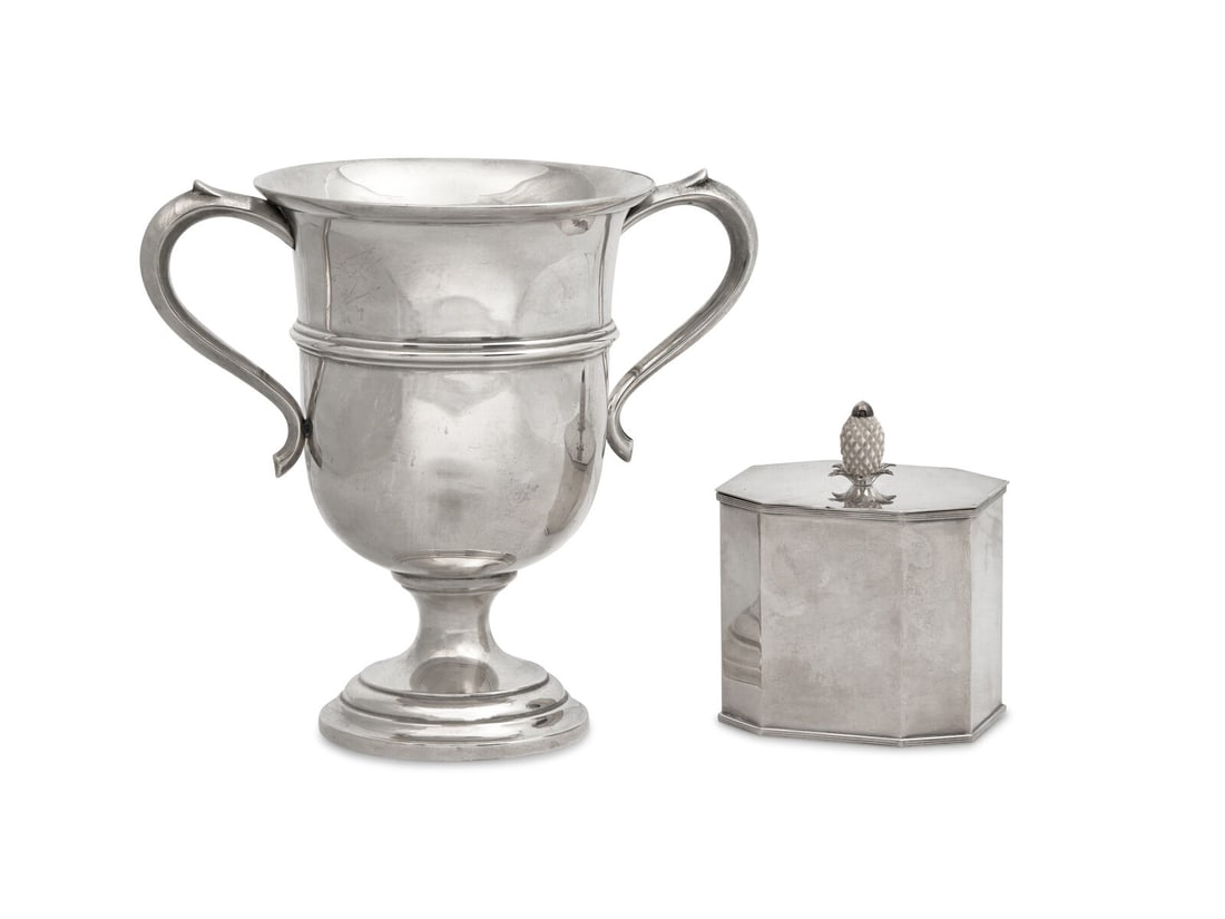 Antique White Star Liner Estate Lot Silver Plate Jug, Sterling Top Vases & Sterling Top Sugar ShakMar 15, 2026STERLING SILVER (3) pc. Estate lot to include (2) bowls, one footed and loving cup dated andApr 10, 2026Sterling Silver HollowwareMar 24, 2026George II Sterling Silver Twin Handled Trophy Cup,Mar 13, 2026Cased George III Sterling Silver Tea Caddy SetMar 16, 2026Irish George III Sterling Silver Twin Handled Trophy Cup,Mar 13, 2026George III Sterling Silver Twin Handled Trophy CupMar 13, 2026Irish George II Sterling Silver Twin Handled Urn,Mar 13, 2026George II Sterling Silver Twin Handled Trophy Cup,Mar 13, 2026A 19TH CENTURY STERLING SILVER SKYPHOS CUP, EDWARD & JOHN BARNARD, C 1867Mar 19, 2026Edward VII Arts & Crafts Sterling Silver Sugar CasterMar 16, 2026George III Sterling Silver Tankard,Mar 13, 2026A George III Pierced Silver Sugar UrnMar 17, 2026George II Sterling Silver Mug,Mar 13, 2026George III Sterling Silver Tea Caddy,Mar 13, 2026Silver Classical Ewer & Two ChargersMar 19, 2026
