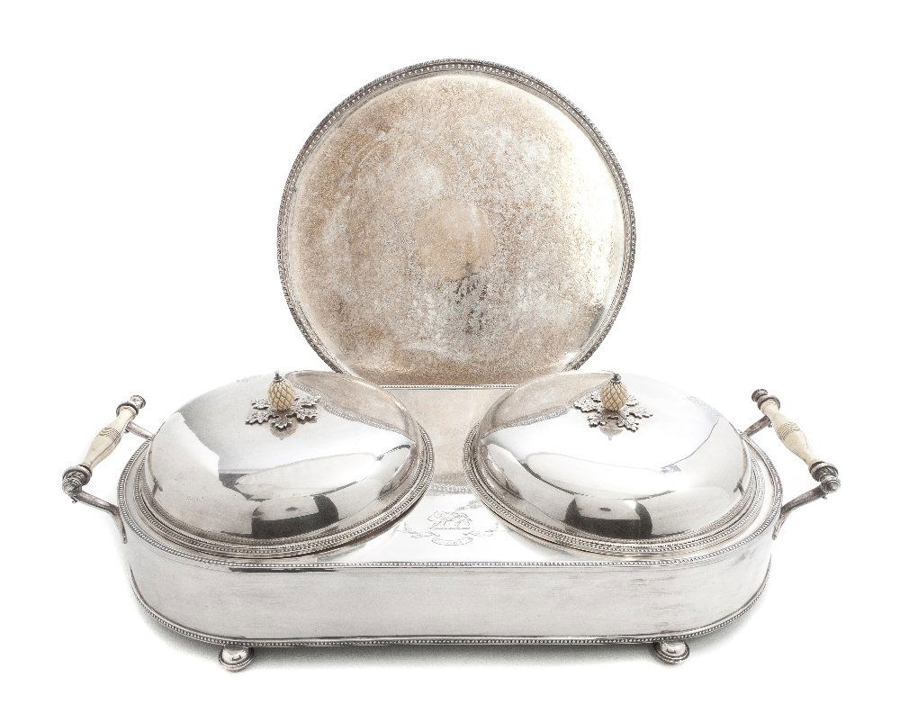 An English Silverplate Two-Part Warming Stand, Wid
