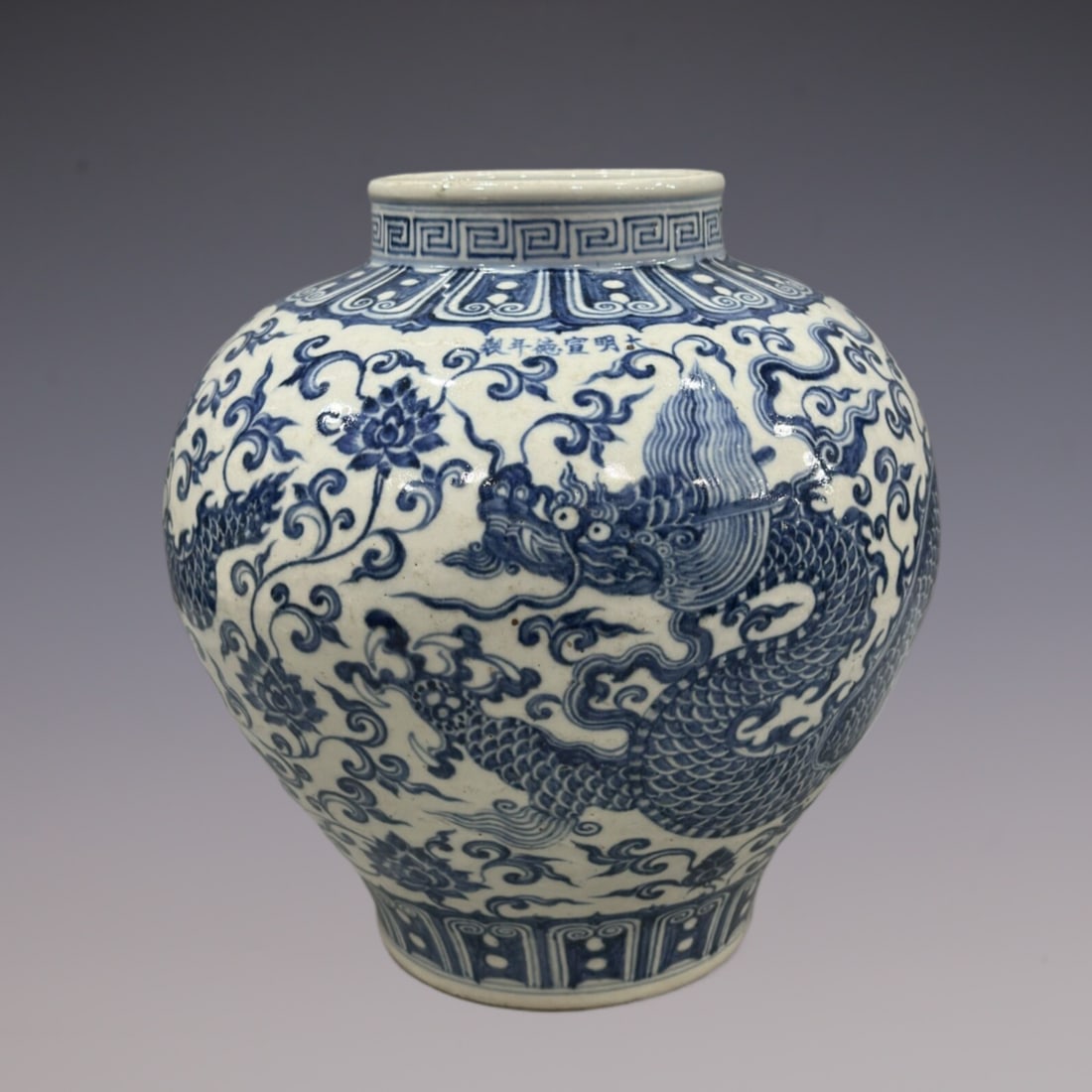An Exquisite Blue and White Dragon Pattern Lotus Pattern Jar