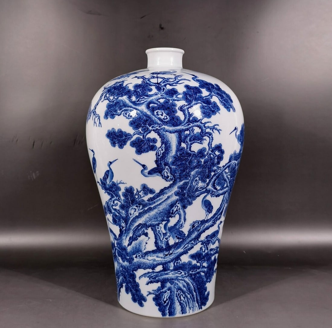 An Exquisite Blue and White Pine and Crane Pattern Vase