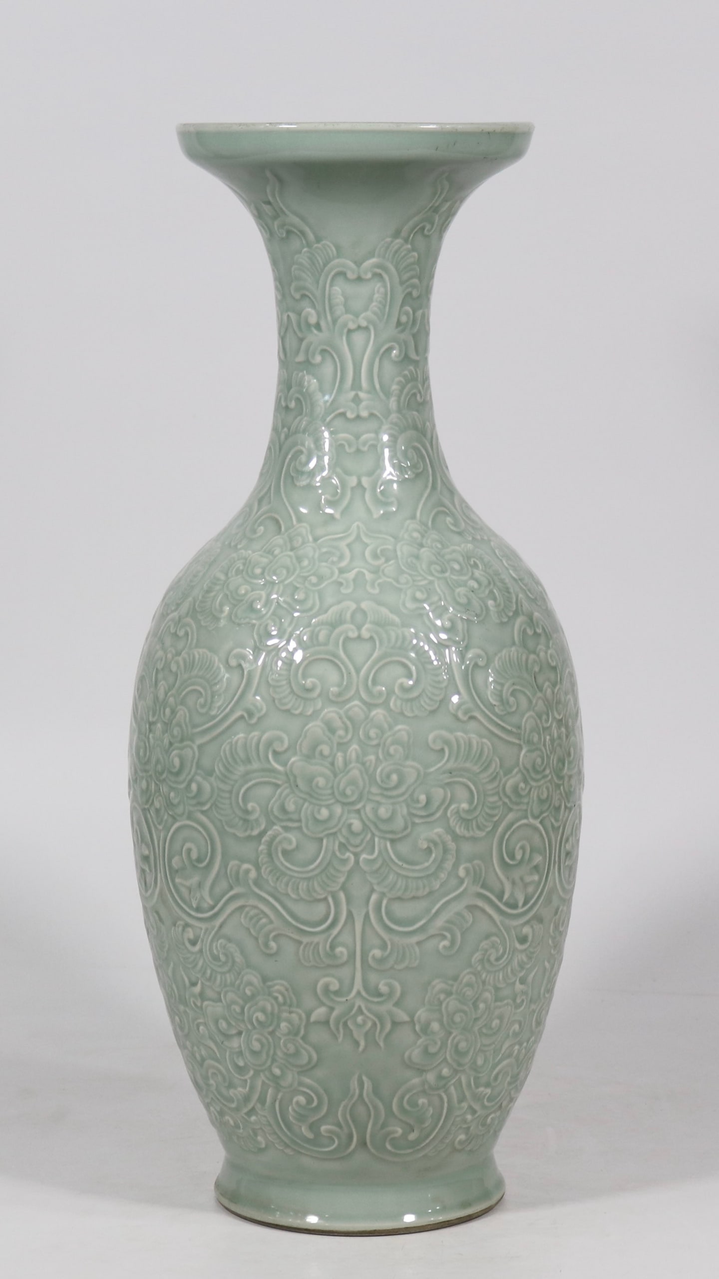 An Exquisite Celadon Glazed Lotus Pattern Vase