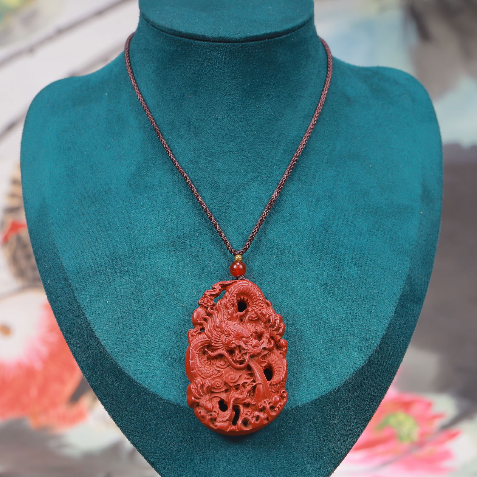 An Exquisite Cinnabar Dragon Pattern Pendant