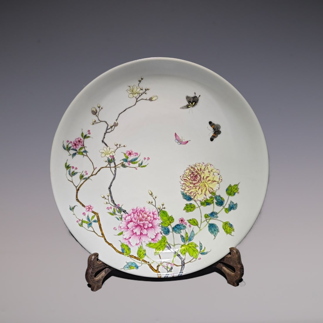 An Exquisite Enamel Flower and Butterfly Pattern Plate