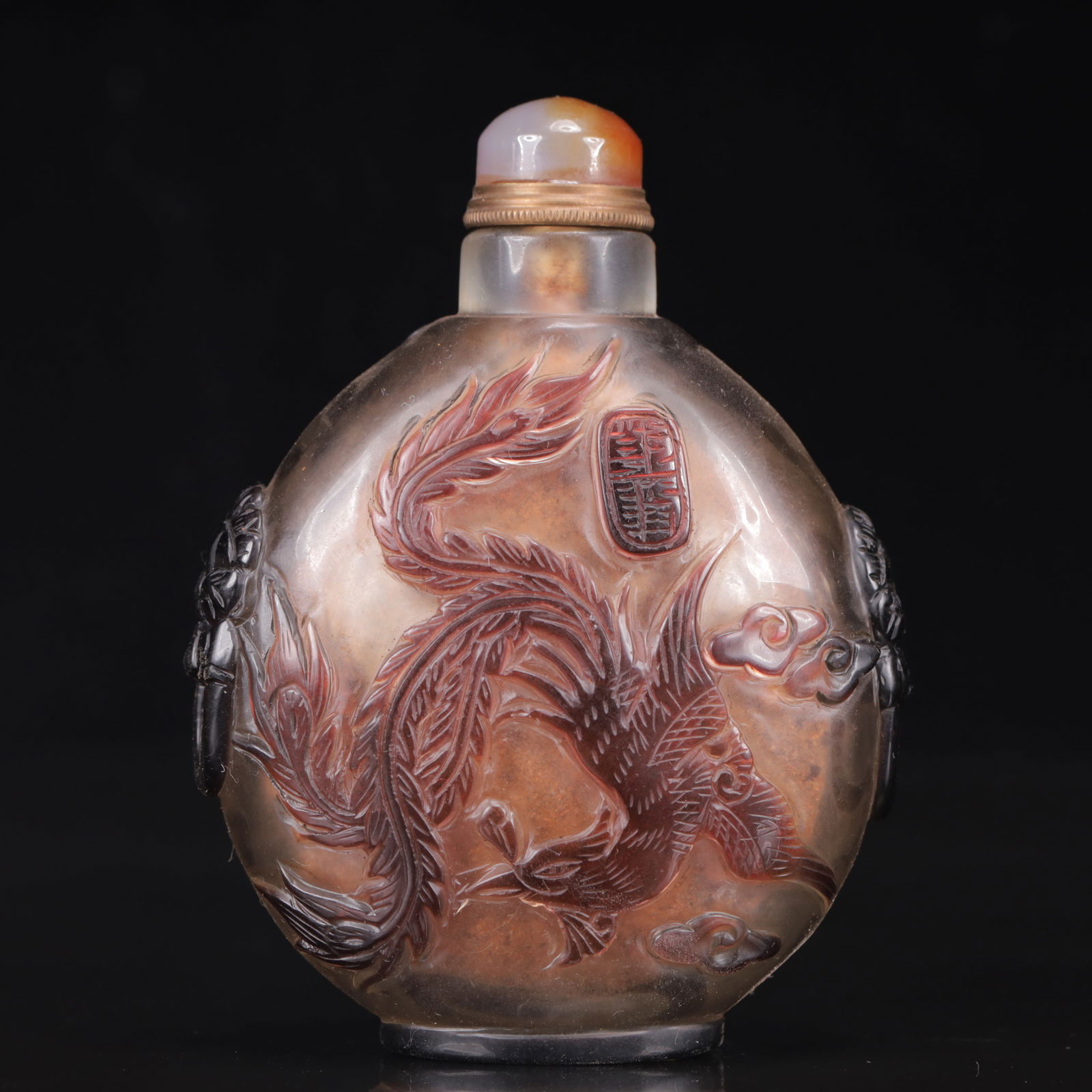 An Exquisite Glass Phoenix Pattern Snuff Bottle