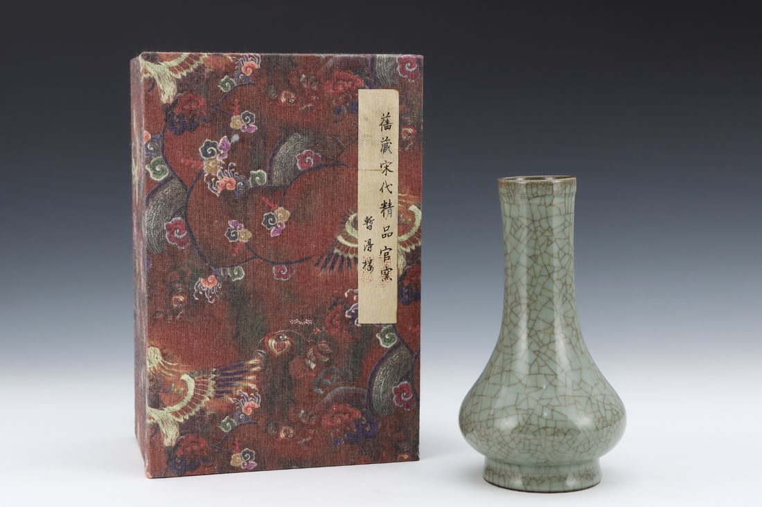 An Exquisite Guan yao Celadon Glazed Ruyi-Ears Vase Cover with Silver,with an Imperial Poem by EmperAn Exquisite Guan yao Celadon Glazed Ruyi-Ears Vase Cover with Silver,with an Imperial Poem by Emperor Qianlong,Song Dynasty, China,Size:22.5cmx12.5cm 官窑青釉银口&