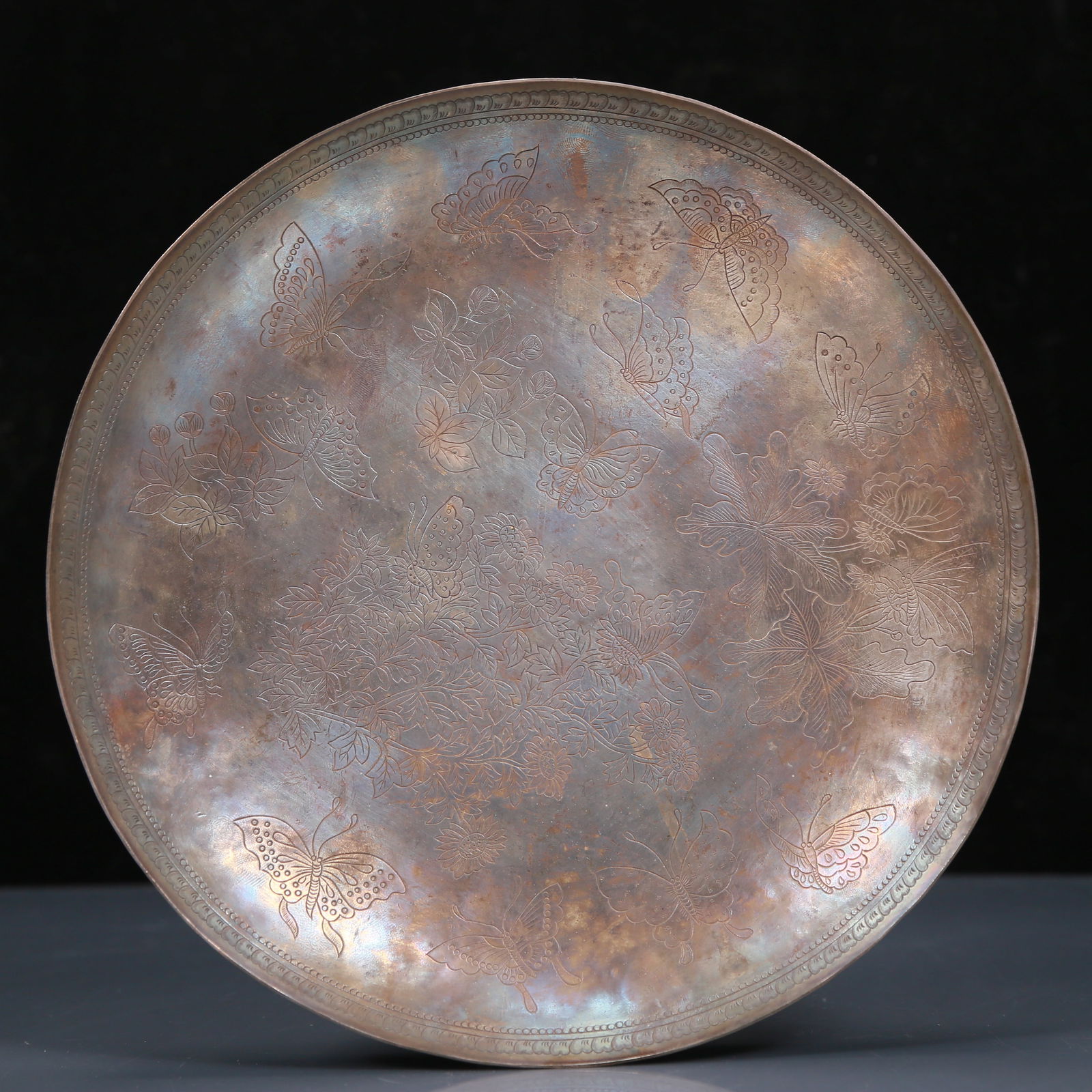 An Exquisite Silver Flower and Butterfly Pattern Plate