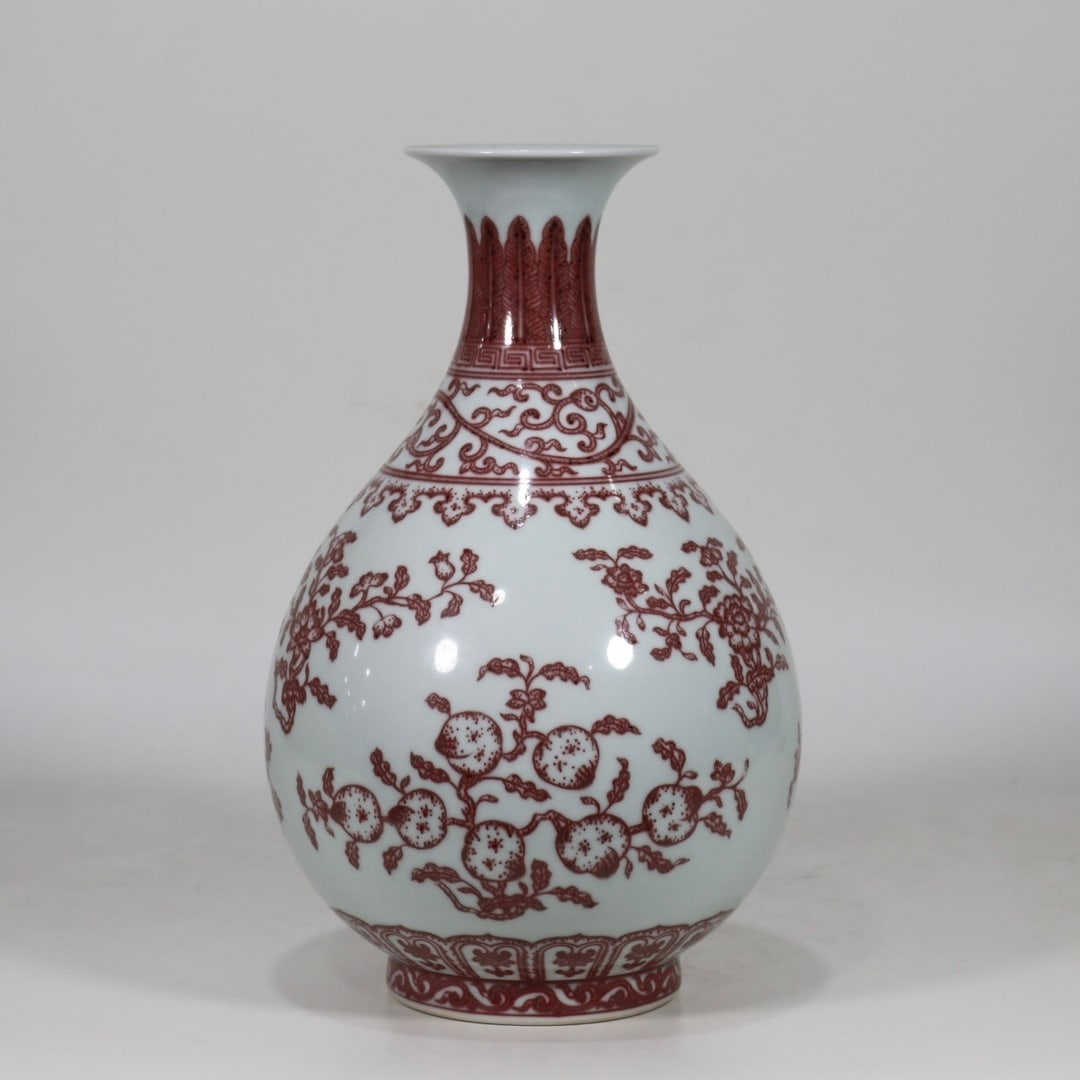 An Exquisite Underglaze-Red Lotus Pattern Flower and Fruit Pattern Vase