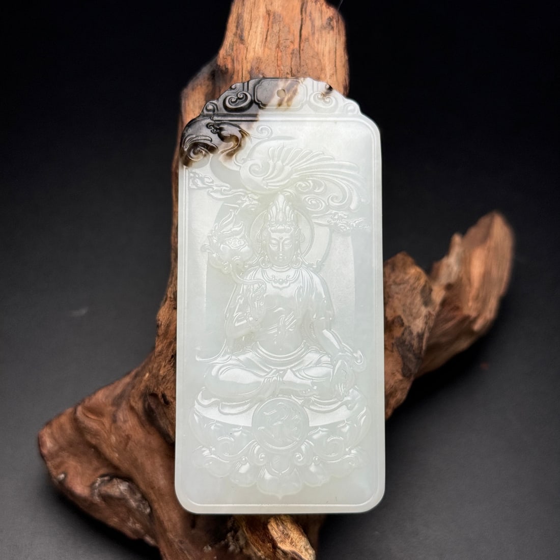 An Exquisite White Jade Avalokitesvara Pattern Pendant