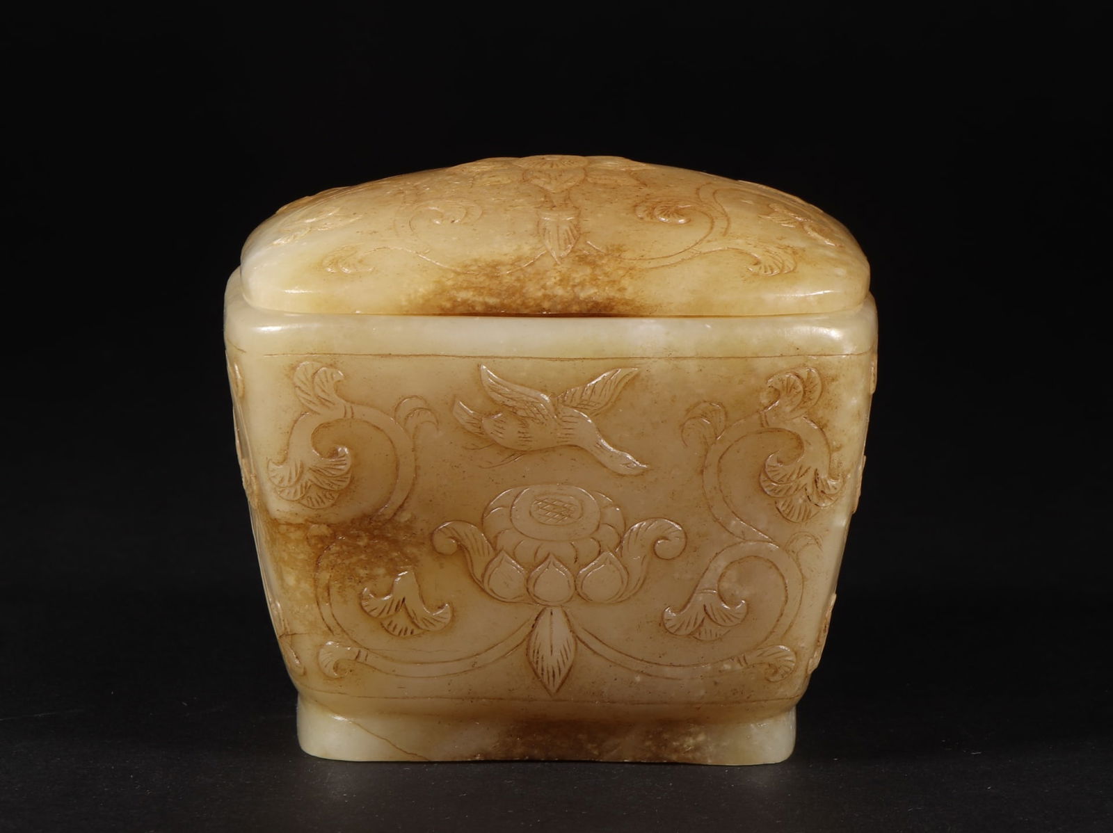 An Exquisite White Jade Flower and Bird Pattern Box